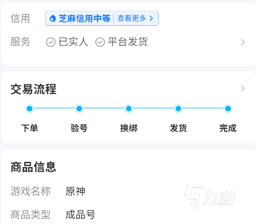 然后這里會有一個非常方便新手的地方,就是它在詳情頁會告訴我們交易會有哪些流程,而且從我們下單開始,平臺這邊就會幫我們進(jìn)行驗號,而且會在核實了信息以后極速換綁,然后再由平臺發(fā)貨直到交易完成,如果我們中間不放心還可以撥打24小時客服,要求人工二次驗證,安全性非常高。