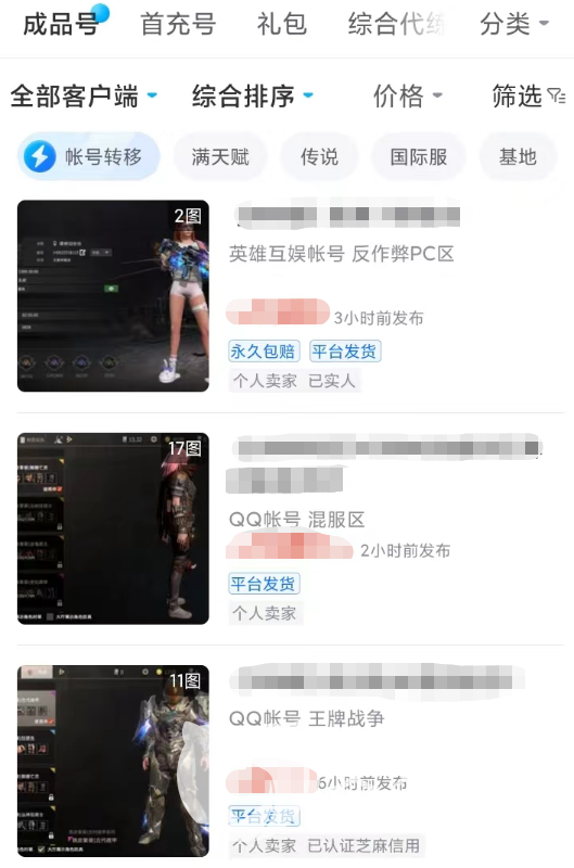然后,各位正式開始選擇商品時,大家就可以在交易貓當中發(fā)現(xiàn)各種類型的成品號,這一種賬號往往會提供大量高級武器和稀有的道具,玩家一旦購買成功,就可以直接進入到游戲當中去享受高級玩家的樂趣。不僅如此,大部分游戲號的交易價格很實惠,玩家都可以輕松進行購買。