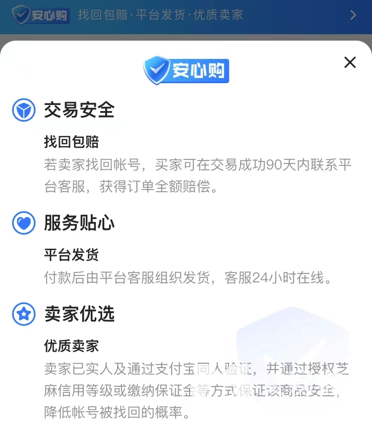 如果說交易貓平臺上保證大家安全的服務有很多,但是買家其實最看重的其實還是這個安心購。為什么它這么厲害呢?其實這是平臺給到一部分優(yōu)質商品的保障,并不是所有上架的商品都有的,這一點大家購號的時候一定要看清楚了。它的服務內容服務范圍廣泛,主要都是針對買家的,比如保險贈送、找回包賠、平臺發(fā)貨等等內容,一般大家都是根據(jù)自己的需求進行購買的。