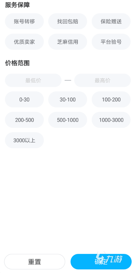 3、同時(shí),利用專區(qū)內(nèi)的篩選功能,將幫助大家獲得更加精準(zhǔn)的游戲商品。玩家可以直接針對游戲的價(jià)格以及包含了哪些服務(wù)保障來進(jìn)行調(diào)整,這樣一來專區(qū)當(dāng)中展現(xiàn)出的商品,大部分都將符合玩家的基礎(chǔ)要求,最終讓各位可以更有效率的進(jìn)行賬號交易。