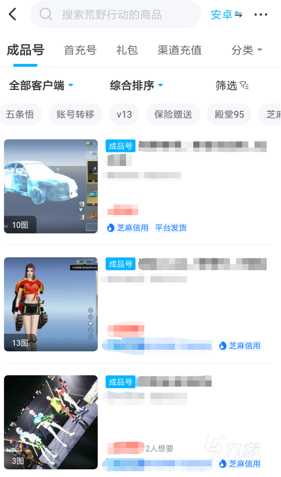 2、荒野行動的專區(qū)會直接出現(xiàn)在交易貓平臺內(nèi),大量高級游戲號會免費提供給玩家們進行瀏覽,各位在游戲當中想要的道具和皮膚,都將出現(xiàn)在成品號之中。玩家們只需要在查看商品的時候,了解一下價格和具體內(nèi)容是否符合自己的要求即可。