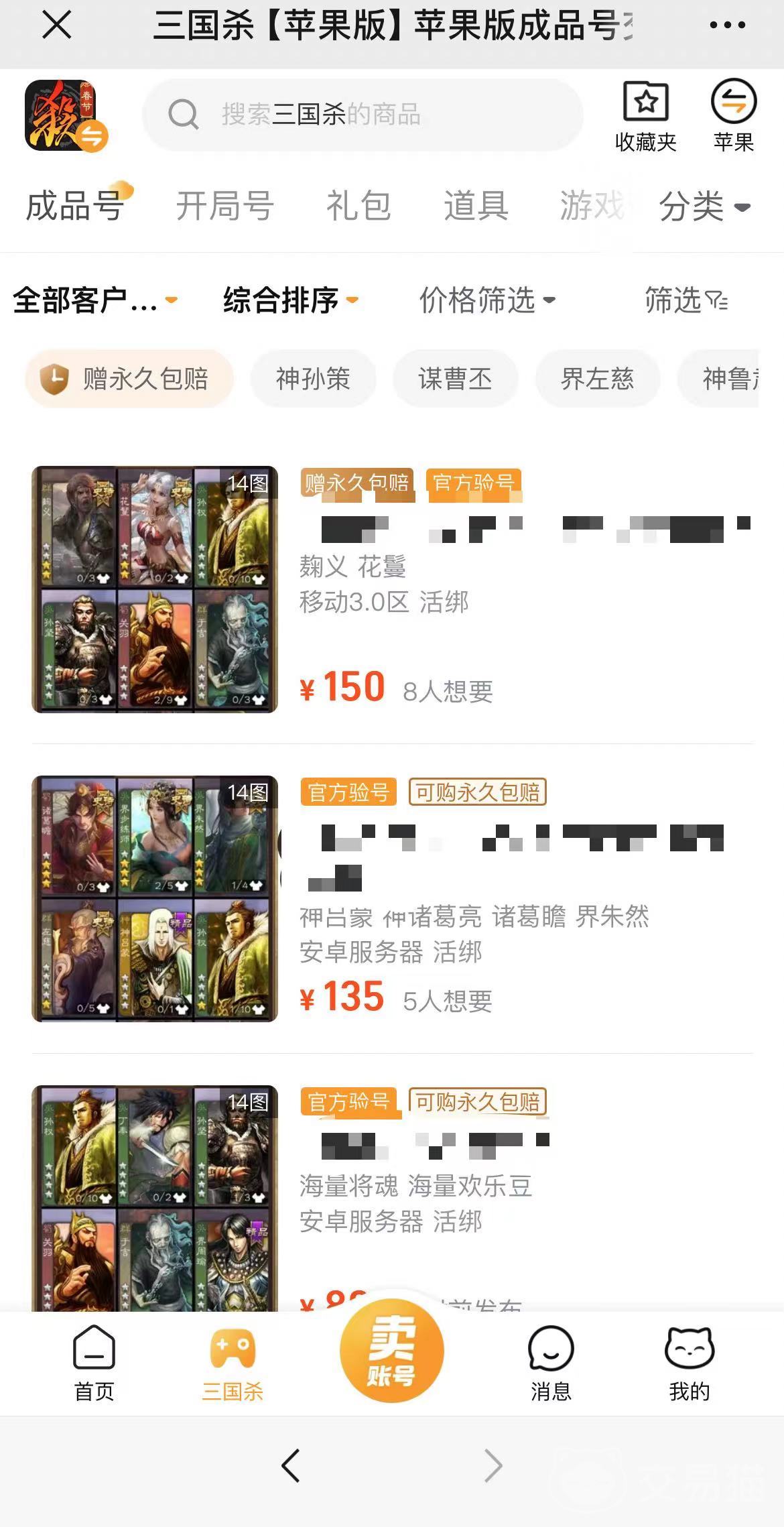 來(lái)源: 極光 作者: 江小舍 2024年07月29日 14:24三國(guó)殺巧妙融合了策略、推理與角色扮演等元素,玩家能扮演各種身份的武將,并且游戲設(shè)有段位區(qū)分。有些玩家想要挑戰(zhàn)更高水平的對(duì)手,卻不愿從頭開(kāi)始升級(jí)三國(guó)殺賬號(hào),這時(shí)購(gòu)買一個(gè)等級(jí)高點(diǎn)的賬號(hào)成為了一個(gè)不錯(cuò)的選擇。今天小編為大家?guī)?lái)三國(guó)殺賬號(hào)交易平臺(tái)推薦,感興趣的朋友們一起來(lái)看看吧。