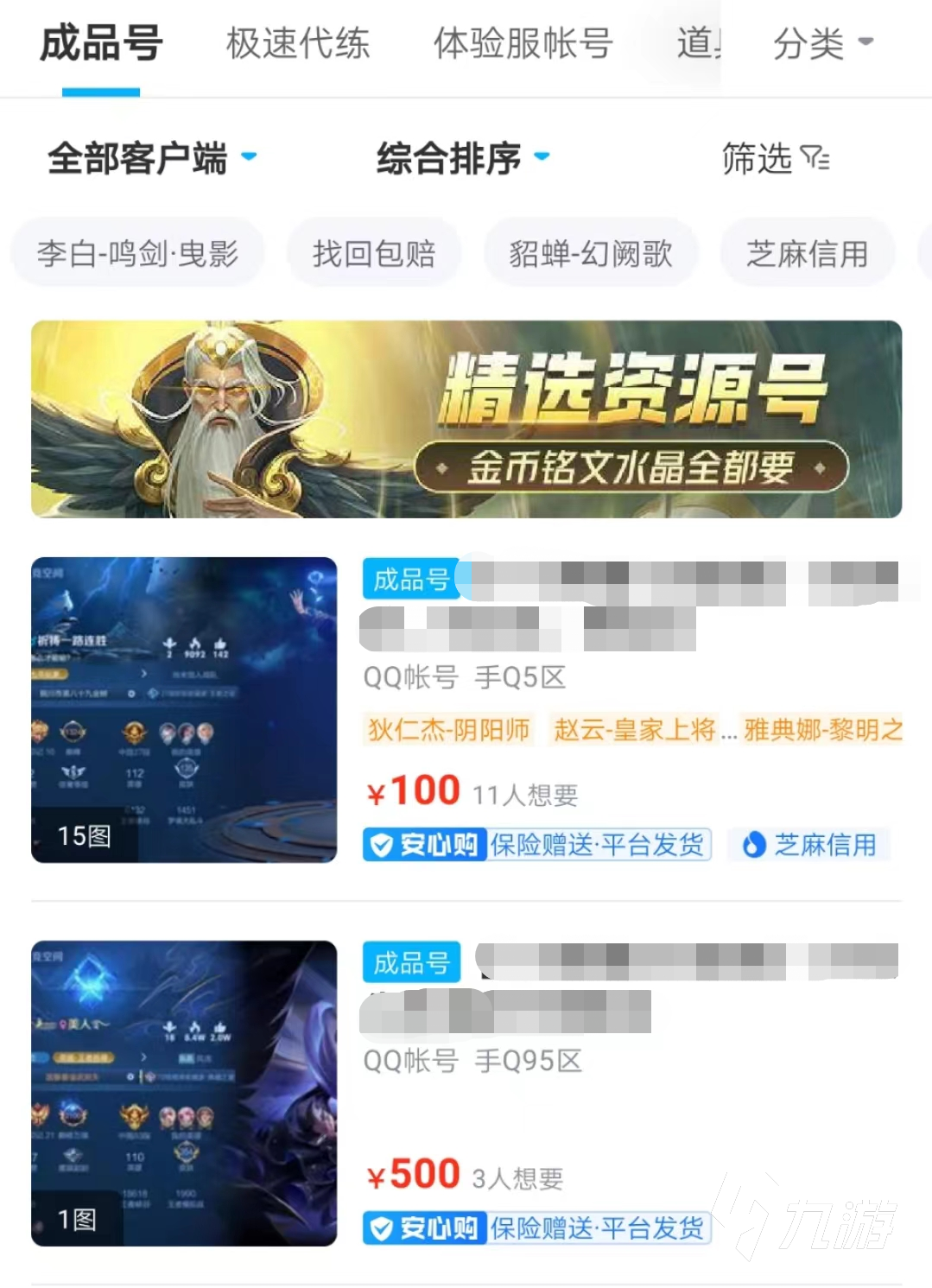 為什么要給大家推薦交易貓呢?因?yàn)樗馁~號(hào)特別多,就拿王者賬號(hào)來(lái)說(shuō),又有全皮膚的賬號(hào),又有全英雄的賬號(hào)。如果大家對(duì)分?jǐn)?shù)段位有要求的話,也能在里面找到相應(yīng)的賬號(hào),只要通過(guò)各種條件篩選和關(guān)鍵字篩選就可以了,賬號(hào)類(lèi)型豐富無(wú)比,保管讓大家滿(mǎn)意。