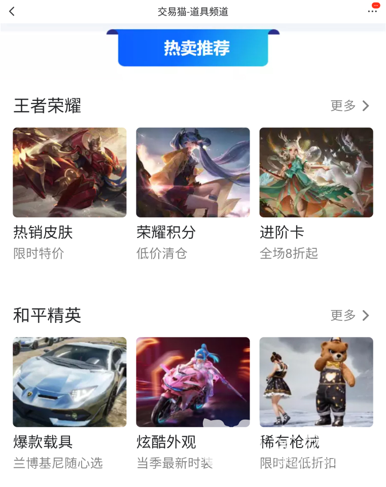 交易貓這個交易平臺相信很多玩游戲的玩家都使用過,軟件包含的游戲種類非常的多,對于當下熱門的游戲設有專區(qū)方便大家查詢。不僅給大家提供很多的游戲賬號,還有各種道具,禮包等商品,如果有的玩家做任務上分沒有時間的話也可以在這里找代練服務。