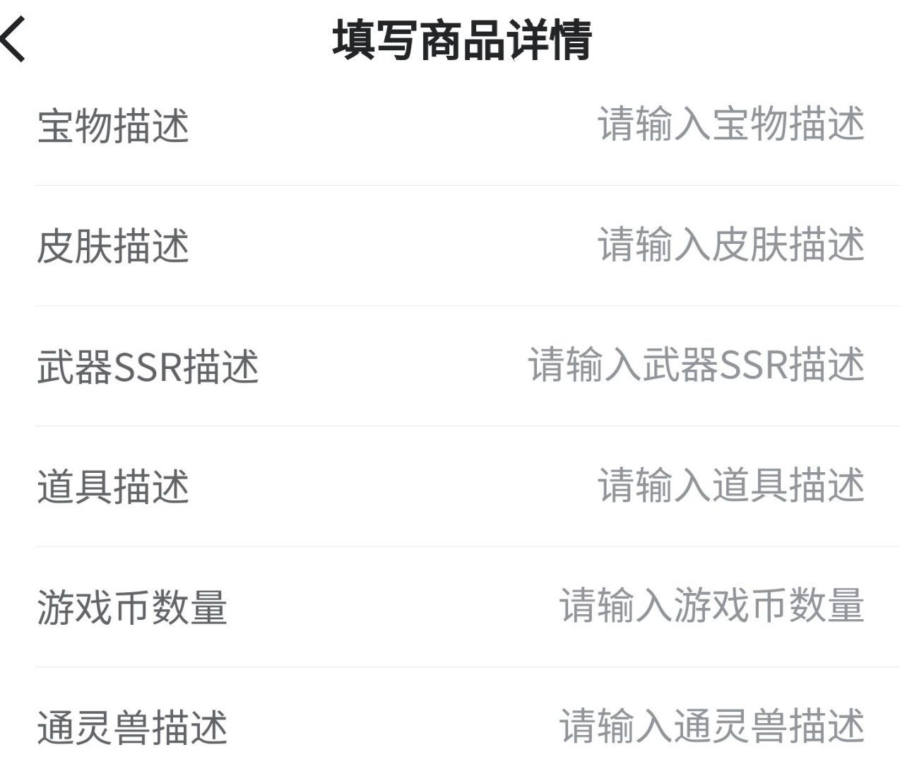 對于游戲基本信息的填寫交易貓也是非常人性化,其他的平臺可能就是需要大家以一大段文字的描述去介紹,這樣不僅讓每一位賣家抓不住重點,也讓買家沒有繼續(xù)閱讀下去的動力,這樣他也就不會再關(guān)注你的賬號信息了,所以交易貓就是以一條一點的形式為大家呈現(xiàn)這些內(nèi)容的,不僅看起來簡潔大方,而且在無形之中還為你提高了賬號出售率。