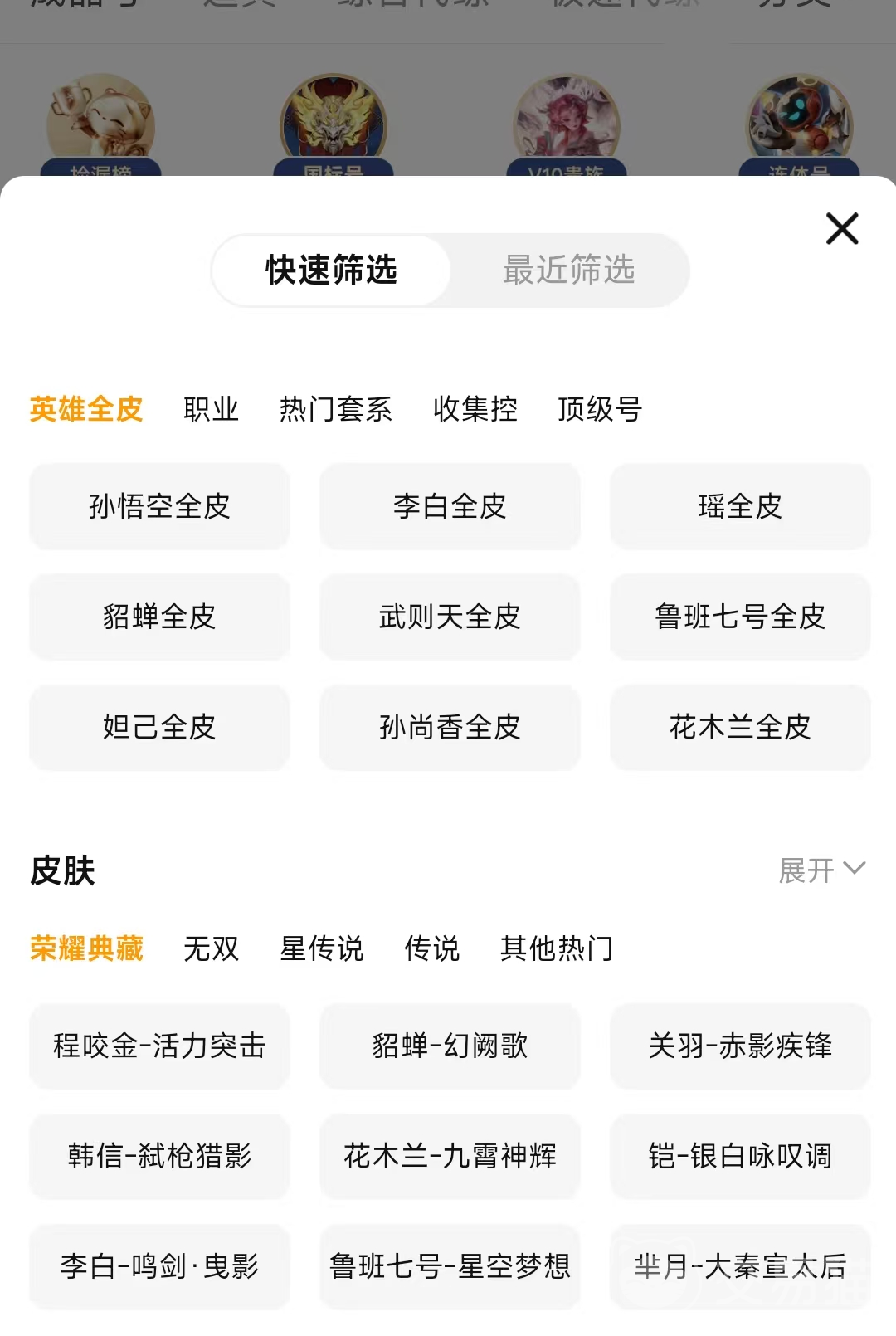 王者榮耀的皮膚內(nèi)容是很多的,甚至一個英雄的皮膚系列就超級多,而玩家要是通過一個一個找的方式實(shí)在是太浪費(fèi)時間了,那么交易貓的快速篩選功能就非常齊全了,點(diǎn)開界面以后幾乎每個選項(xiàng)都是有用的,可以直接篩選出某個英雄的皮膚,比如說想要孫悟空的全皮,就可以在這個篩選功能找到,從而精準(zhǔn)找到所屬賬號,用起來非常地便捷,而安卓用戶可以通過上方按鈕下載,ios用戶推薦到交易貓官網(wǎng)使用哦。