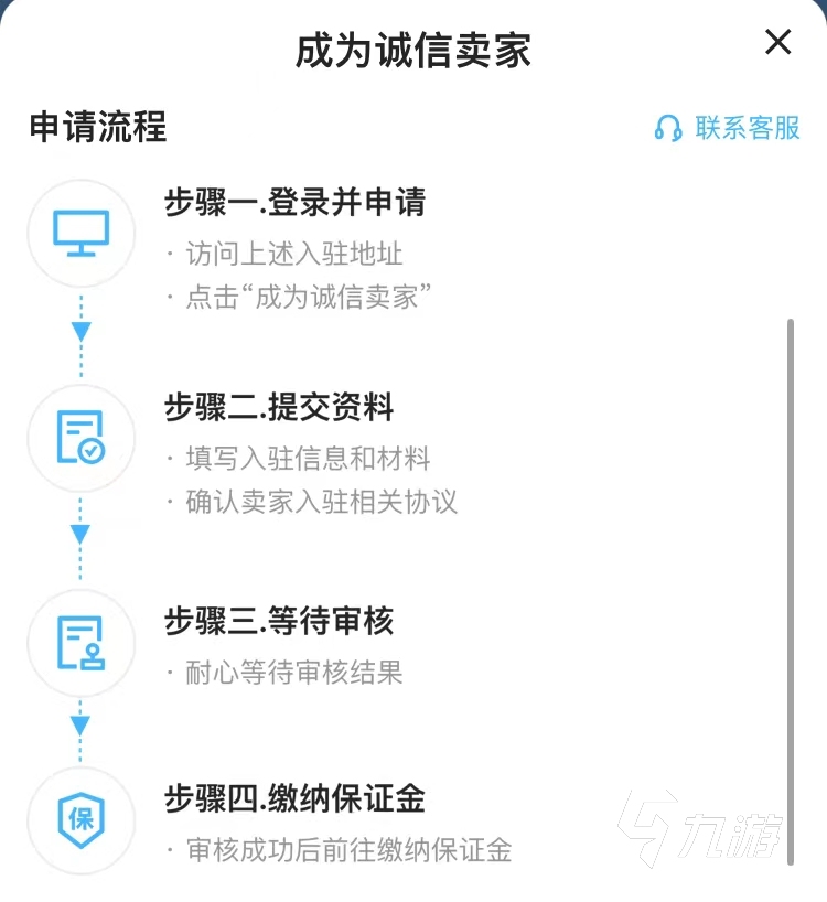 選擇交易貓上交易的話,對于要出售賬號的賣家來說,注冊賣家信息是第一步。小編在這直接給大家開個后門,告訴大家注冊誠信賣家會更好,個人賣家的話享受的東西就少了,買家也不放心。像誠信賣家需要大家提交一定的材料和信息,包括身份證正反面的信息,實時的拍照,并且還要確認入駐的相關(guān)協(xié)議,最后才交給平臺審核,一步步的流程走下來,通過后繳納保證金就大功告成了。一般付出與收獲是對等的,只有這樣才順著自己的想法發(fā)展。