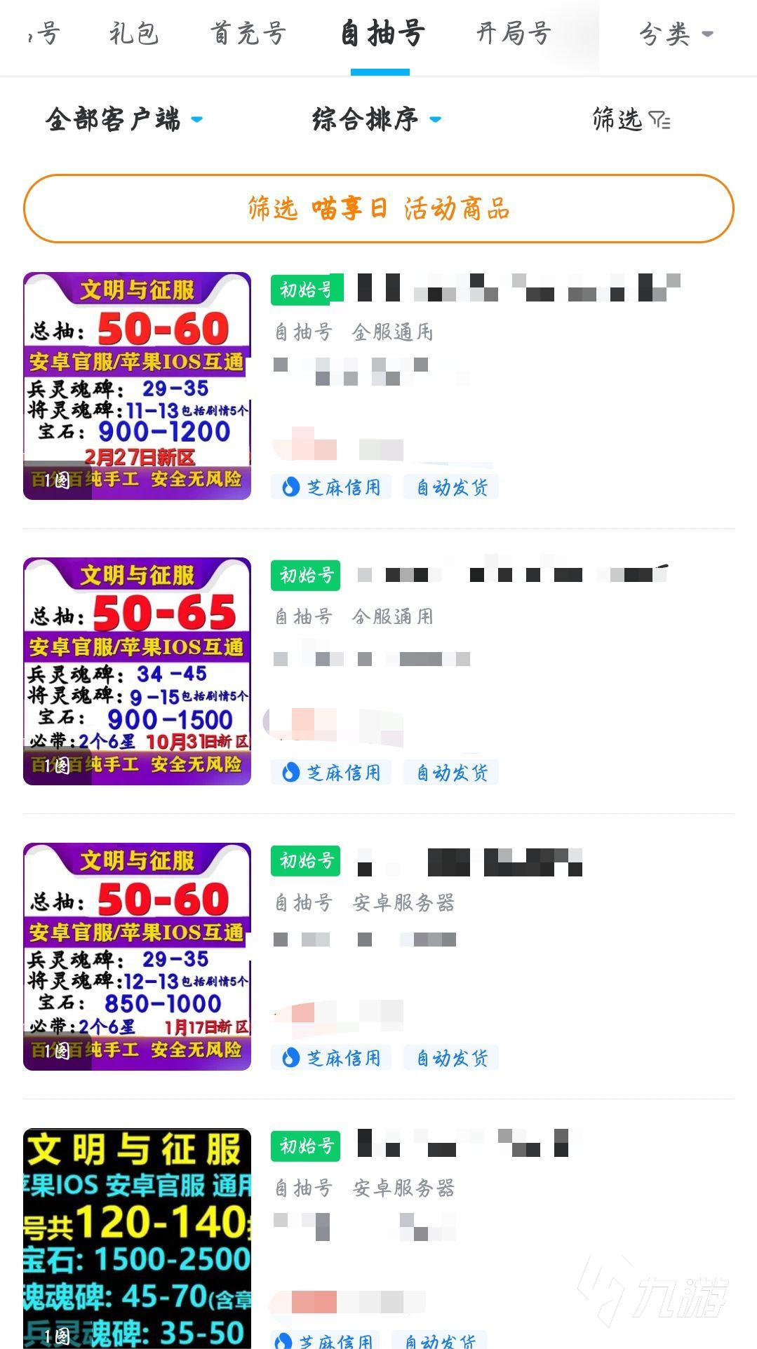 從小編給的圖內(nèi)可以看到交易貓這個平臺是有很多文明與征服自抽號的,這對于喜愛文明與征服手游的玩家們來說是個好消息,因為玩過文明與征服的小伙伴們都知道這游戲的資源攢起來是很麻煩的,對于自己去肝游戲的小伙伴們來說,可能一段時間內(nèi)都達(dá)不到自抽號一樣的資源,所以可以先選擇一個自抽號玩起來,效果好的話就可以當(dāng)做長期賬號玩啦。