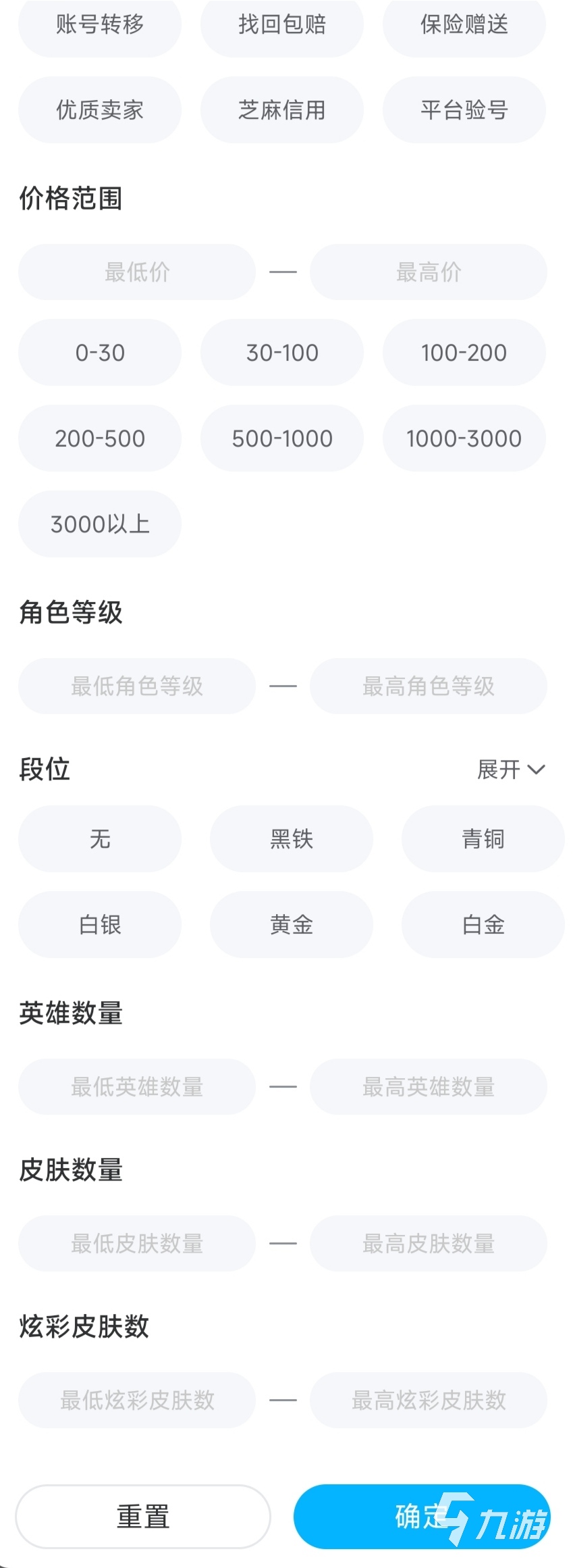 交易貓英雄聯(lián)盟專區(qū)里有海量的訂單,這其中囊括了高段位的大神號(hào)、皮膚眾多的精品號(hào)以及前文中提到的精粹號(hào)。有小伙伴們可能就要問了:如何高效快捷地找到想要的精粹號(hào)呢?只需在專區(qū)內(nèi)鍵入關(guān)鍵字即可快速定位。另外,專區(qū)內(nèi)的篩選界面會(huì)因?yàn)橛螒虻牟煌煌?,例如英雄?lián)盟專區(qū)內(nèi)就可以直接篩選段位、英雄數(shù)量、皮膚數(shù)量以及價(jià)格范圍,這樣一來定位適合自己的訂單就顯得格外便捷。