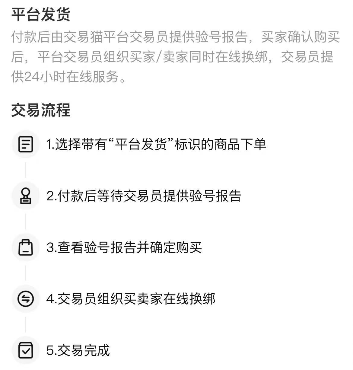 交易貓以平臺發(fā)貨為主要交易模式,這種交易方式的好處是解放賣家雙手,也讓買家覺得更加安全更加靠譜,大部分買家都覺得跟平臺來交易比跟個人賣家對接交易要放心得多。平臺的交易專員都是經(jīng)過嚴(yán)格培訓(xùn)的,對于每個流程了如指掌,快速處理好每一個交易步驟,促進交易更快完成。