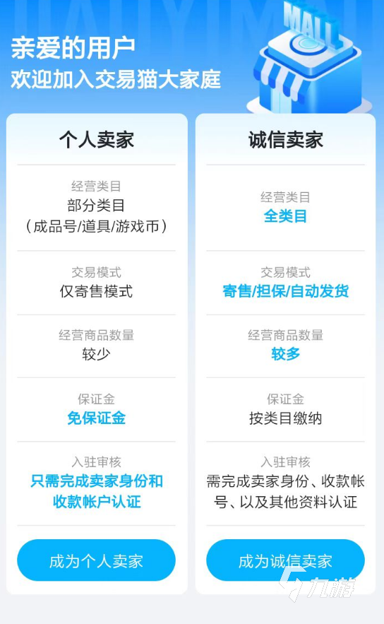1、賣家資格申請的開放通道,將讓玩家們自由獲取一個不同的賣家身份。大家在交易貓之中正式成為了一個賣家之后,才可以擁有發(fā)布商品的權(quán)限。這一點(diǎn)也會減少大量無效交易信息的出現(xiàn),同時也會讓買家在交易的過程當(dāng)中更放心。