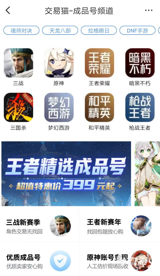 1、交易貓平臺收錄了大量針對性的游戲?qū)^(qū),不僅僅是幻塔玩家可以購買到自己喜歡的游戲號,在成品號頻道內(nèi),各種當(dāng)前最熱門的游戲都會直接為玩家進(jìn)行展現(xiàn)。各位也將在這里選擇到價格不等的各類游戲高級賬號,而這些賬號往往會提供高等級的角色和大量稀有武器裝備。