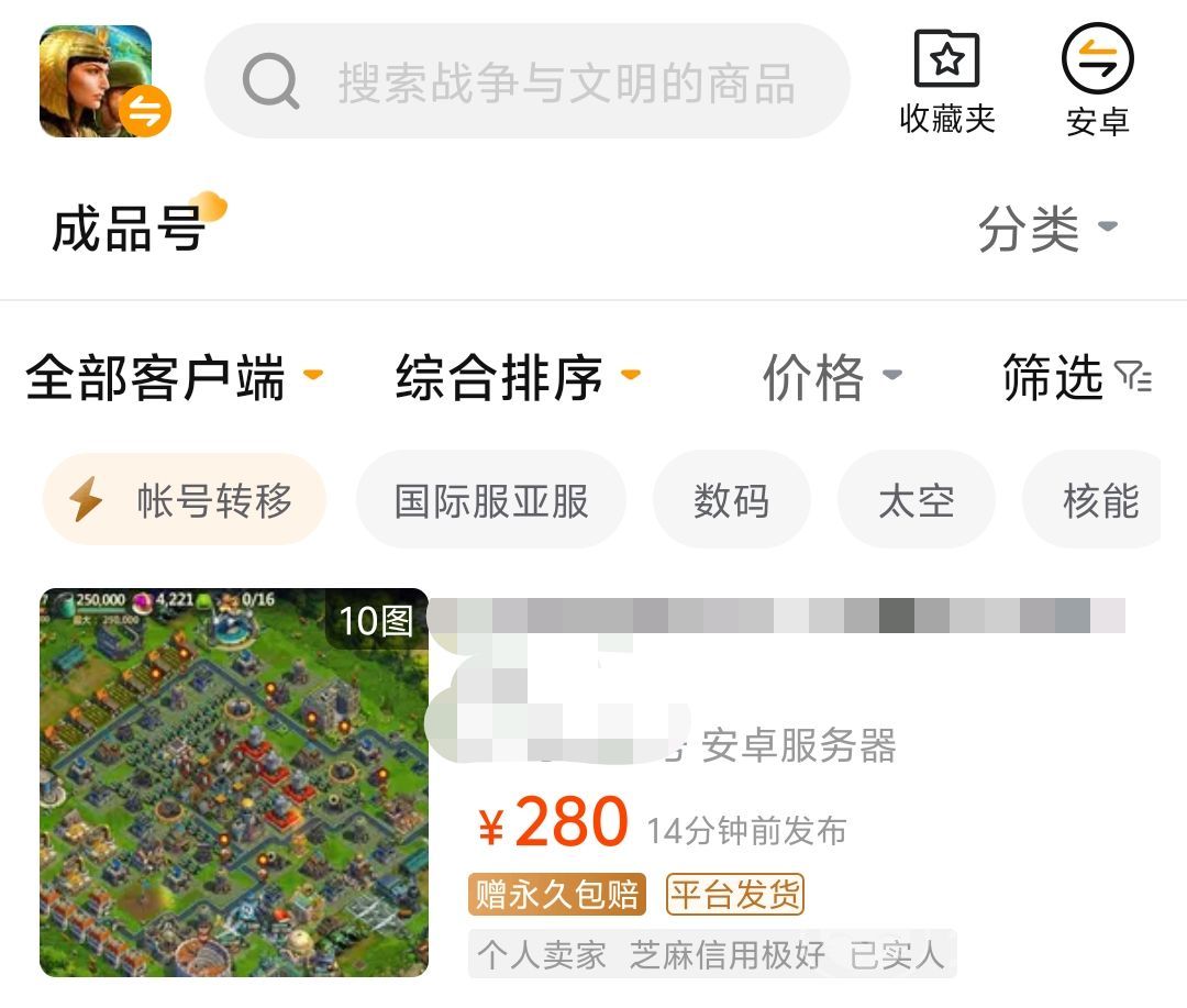 戰(zhàn)爭與文明賣號的軟件推薦 靠譜的游戲賬號交易app分享
