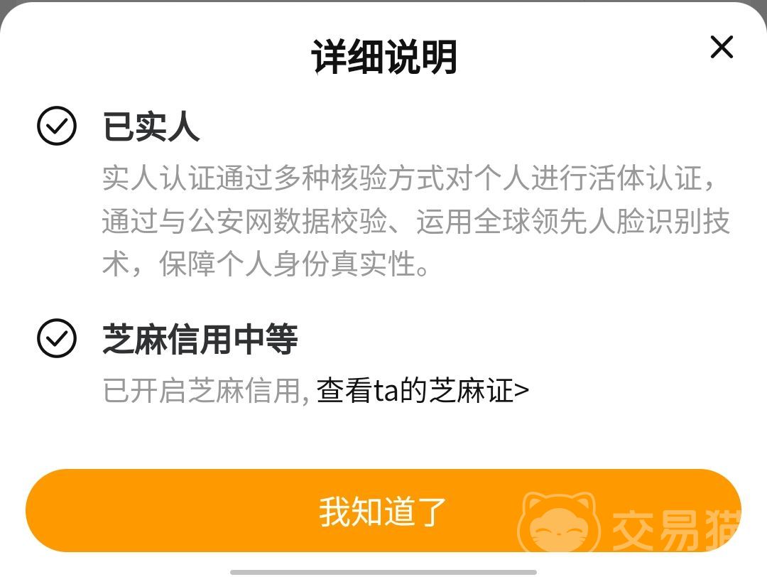 買號其實(shí)我們作為買家首先挑選的并不是賬號是否符合我們需要,同時還有商家的個人信用是否為良好或優(yōu)秀。這一點(diǎn)相信沒有幾個交易平臺能夠提供給買家們作為參考,但是交易貓卻和支付寶有著深度的合作關(guān)系,賣家想要出售商品就必須綁定收款賬戶也就是自己的支付寶賬號,這樣買家能夠很輕松的看清對方是否為個人、芝麻信用等級、實(shí)人認(rèn)證情況、工作證甚至是逾期違約次數(shù)等等來判斷此次交易風(fēng)險。