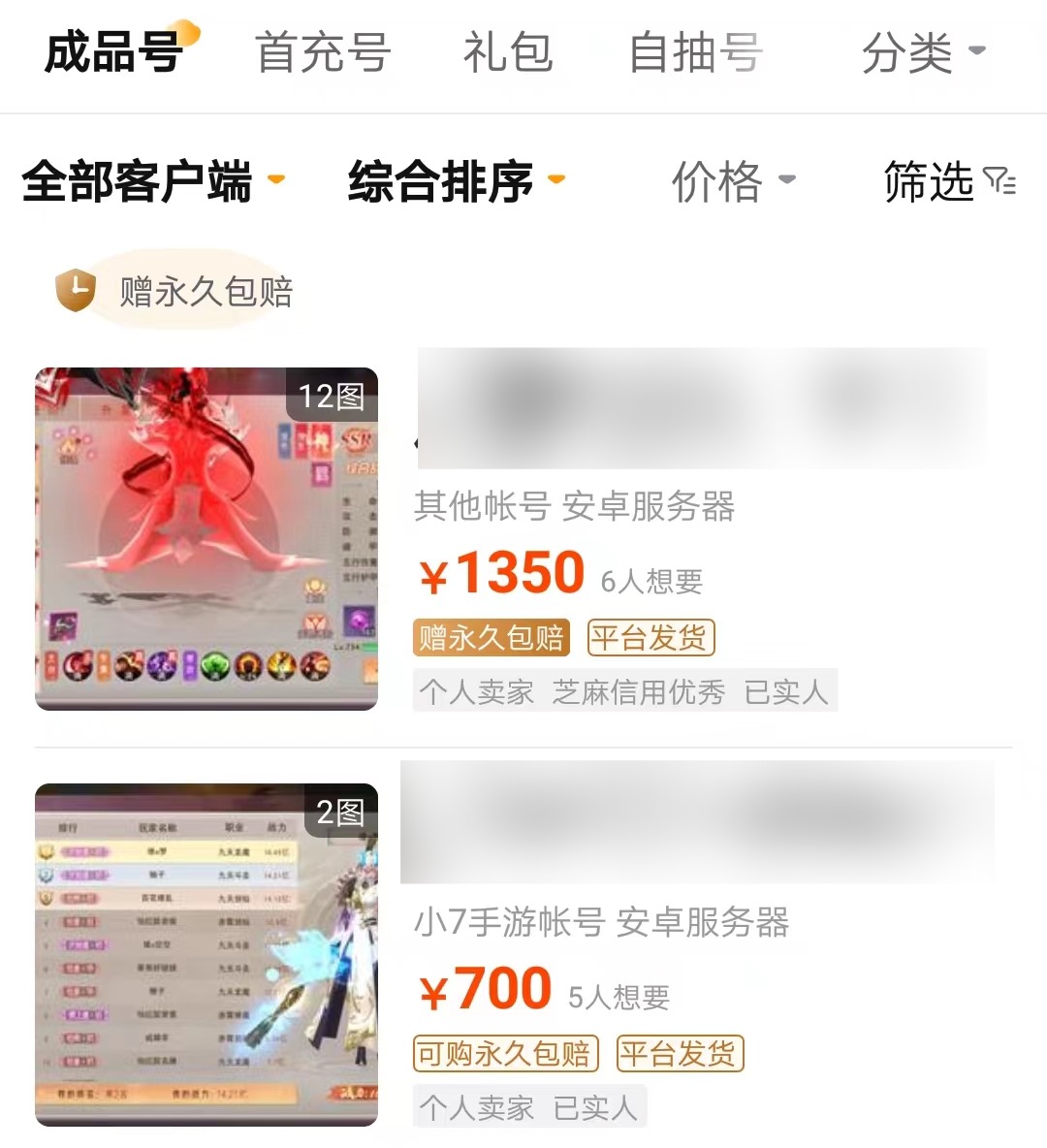 同時(shí)作為買家最怕的就是在購買完賬號(hào)之后會(huì)被賣家找回,在商品列表中可以篩選出【贈(zèng)永久包賠】服務(wù)的游戲賬號(hào)商品。如果賣家不贈(zèng)送這項(xiàng)服務(wù),玩家也能在游戲賬號(hào)詳情頁上購買這項(xiàng)服務(wù)。如果賣家能贈(zèng)送自然是最好的,擁有了這項(xiàng)服務(wù)之后在交易完成之后,只要是賬號(hào)被賣家惡意找回的話,那么購買賬號(hào)的買家可以通過這項(xiàng)服務(wù)來挽回購買賬號(hào)的損失。如果說想要賣號(hào)的玩家在上架商品時(shí)可以勾選這項(xiàng)服務(wù)。