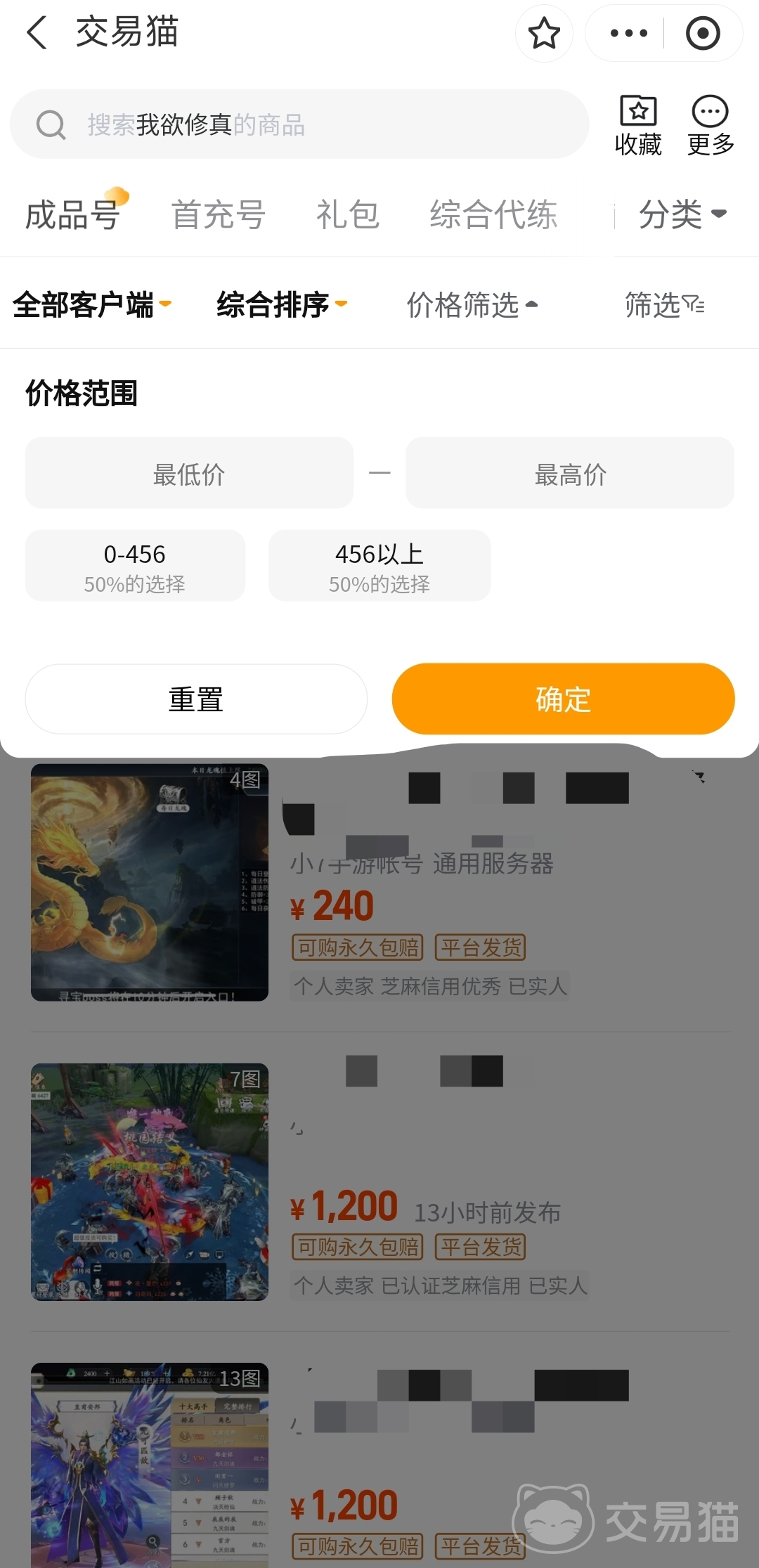 由于交易貓是國(guó)內(nèi)知名的游戲賬號(hào)交易平臺(tái),擁有高度的人氣,吸引了大量我欲修仙的游戲玩家加入。因此,在這個(gè)平臺(tái)上購(gòu)買游戲賬號(hào)有很大的選擇余地。玩家只需搜索“我欲修真”,即可進(jìn)入專區(qū),看到各種價(jià)位不同的成品號(hào)、首充號(hào)和禮包道具等,涵蓋了新區(qū)和老區(qū)的各種服務(wù)器。