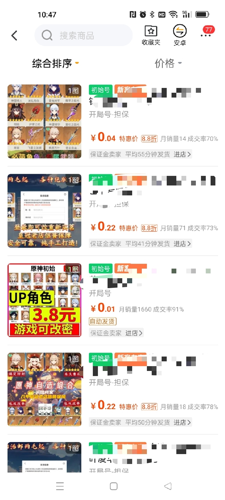 像原神這樣的大作自然是有專門設(shè)立的游戲賬號交易專區(qū),從應(yīng)用首頁就能輕松進入。專區(qū)內(nèi)又細分為代肝、自抽、代練、以及購買指南等多個小模塊。更是有新人的專項福利,能夠以極低的價格購買力一些初始號,你需要什么樣的角色,直接挑選即可。
