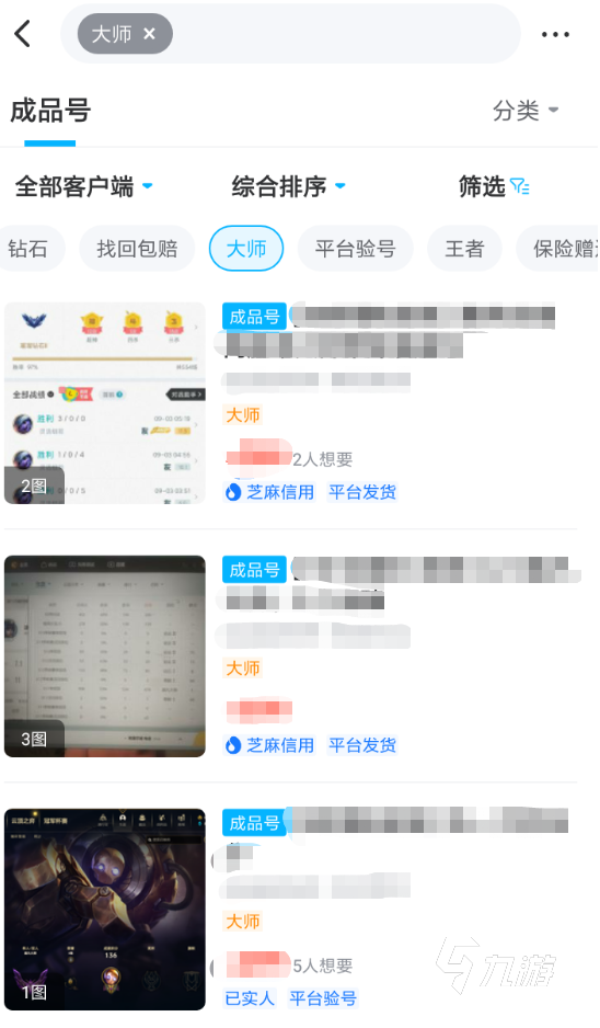 1、部分玩家在游戲內(nèi)會成功的進入到大師級別,這一類的游戲賬號價值也將發(fā)生巨大的變化。各位玩家如果想要快速了解到大師號目前的售價,就可以直接進入到交易貓當中來進行查看,平臺當中大量交易信息,將幫助各位進行一個有效的判斷。