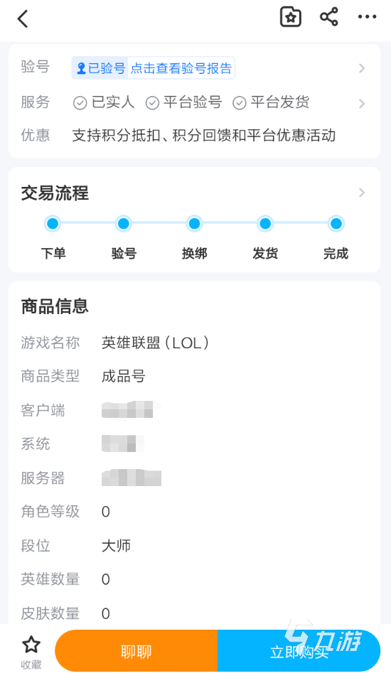 3、遇到感興趣的商品時,進入詳情頁之中查看更多內(nèi)容,也將幫助玩家了解大師號的價值所在。目前一個大師號的價值差異主要體現(xiàn)在所在的大區(qū)當中,因為英雄聯(lián)盟的不同大區(qū)的整體實力相差甚遠,部分戰(zhàn)力較弱的大區(qū),一個大師號的含金量會降低。
