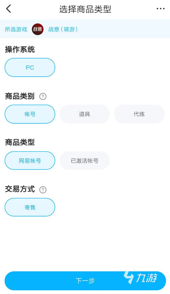 1、各位可以看到目前平臺所支持的戰(zhàn)意游戲號類型已經(jīng)包括了了官方號和其他類型的激活賬號,所以大家如果想要快速處理掉游戲號,就不用擔(dān)心賬號類型帶來的限制問題,各位可以順利的將自己的交易內(nèi)容發(fā)布到平臺當(dāng)中。