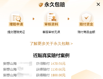 在交易這類虛擬賬號時,大家最擔(dān)心的是賬號被退回或者被盜,這樣對雙方都會造成一定的損失。所以交易貓就推出了永久包賠服務(wù),當(dāng)你出售的賬號出現(xiàn)問題時就會賠付給買家一定的金額。即便不支持買家也可以自己買一份,同樣能夠避免浪費錢。