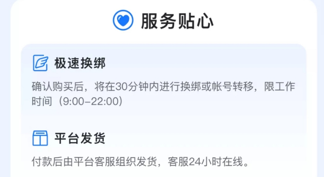 想要提高交易的安全性,還能選擇平臺(tái)發(fā)貨,這個(gè)服務(wù)的意思是買家的交易是跟平臺(tái)來對(duì)接的,不需要面對(duì)賣家。平臺(tái)人員公平公正并且高效地為大家進(jìn)行交易流程,這樣大家就可以安全拿到賬號(hào)了。
