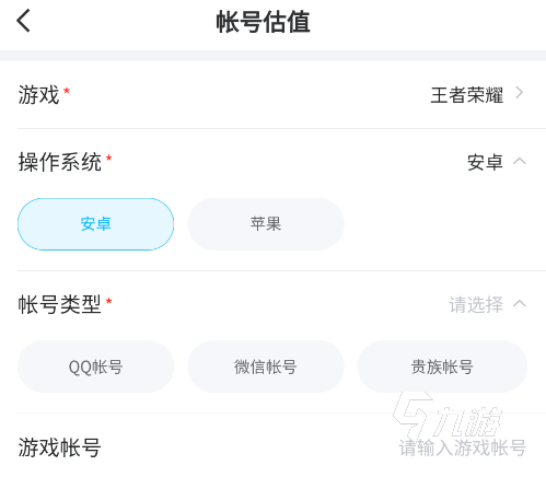 在交易貓平臺,玩家可以免費對自己的王者賬號進行估值,估值速度快,只需要30秒就能夠得出一個讓玩家滿意的賬號價格出來,只需要玩家將自己賬號的基礎(chǔ)信息還有賬號的裝備情況給填寫之后,點擊一鍵估值就可以獲取到自己賬號的價值了。