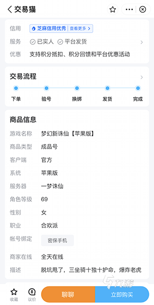 來源: 極光 作者: 檸檬 2022年11月29日 20:03唯美仙俠游戲熱度很高,仙魔大戰(zhàn)一觸即發(fā),參與夢幻新誅仙,玩家修煉功法和培養(yǎng)神獸等。買家培養(yǎng)角色時(shí)間線很長,購買成品號最劃算。下面小編介紹一下夢幻新誅仙怎么買號最劃算。交易貓作為運(yùn)營多年的第三方平臺,它提供超多游戲賬號,玩家們隨心所欲挑選商品。