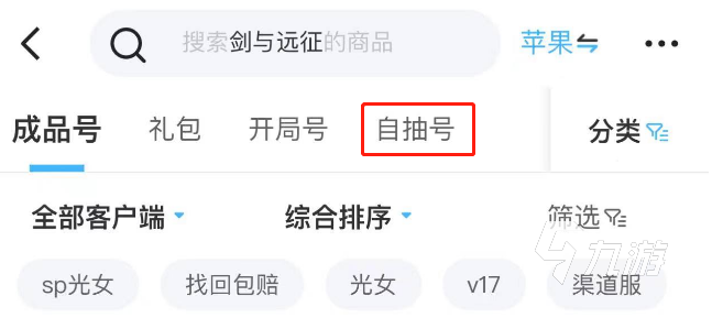 通過下圖大家應(yīng)該也能發(fā)現(xiàn),平臺(tái)里面除了有開局號(hào)以及成品號(hào)一類設(shè)置有專欄外,還為玩家開放了自抽號(hào),這一類游戲號(hào)在價(jià)值上也是非常的具有吸引力,小伙伴們要做的就是直接去搜索查找發(fā)現(xiàn)它們的存在,通過綜合排序來查找一些高性價(jià)比賬號(hào),同時(shí)像v17、光女等價(jià)值很高的游戲號(hào),也是能直接點(diǎn)擊標(biāo)簽進(jìn)入哦。
