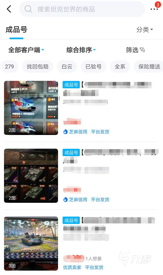 1、交易貓app直接為用戶準(zhǔn)備了坦克世界的游戲交易專區(qū),專區(qū)內(nèi)可以瀏覽到不同類型的賬號(hào)。其中金幣號(hào)是包含了大量游戲金幣的賬號(hào)類型,玩家購(gòu)買后可以通過金幣去自主解鎖自己感興趣的坦克,而成品號(hào)則是解鎖了大量主流坦克的賬號(hào),并且游戲等級(jí)較高,可以體驗(yàn)到更多模式。