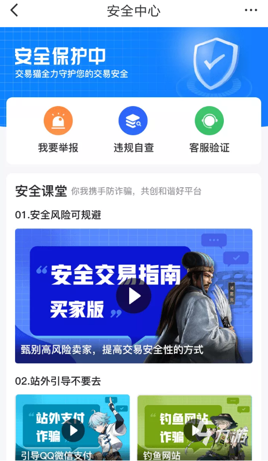 1、無論各位在哪一個(gè)平臺(tái)去購買游戲號(hào),都需要觀察該平臺(tái)的安全機(jī)制是否成熟。在交易貓內(nèi),不僅有專門的安全中心,同時(shí)平臺(tái)也支持玩家們?cè)诰€舉報(bào)各種虛假商品內(nèi)容,讓大家來共同守護(hù)一個(gè)綠色的交易環(huán)境。