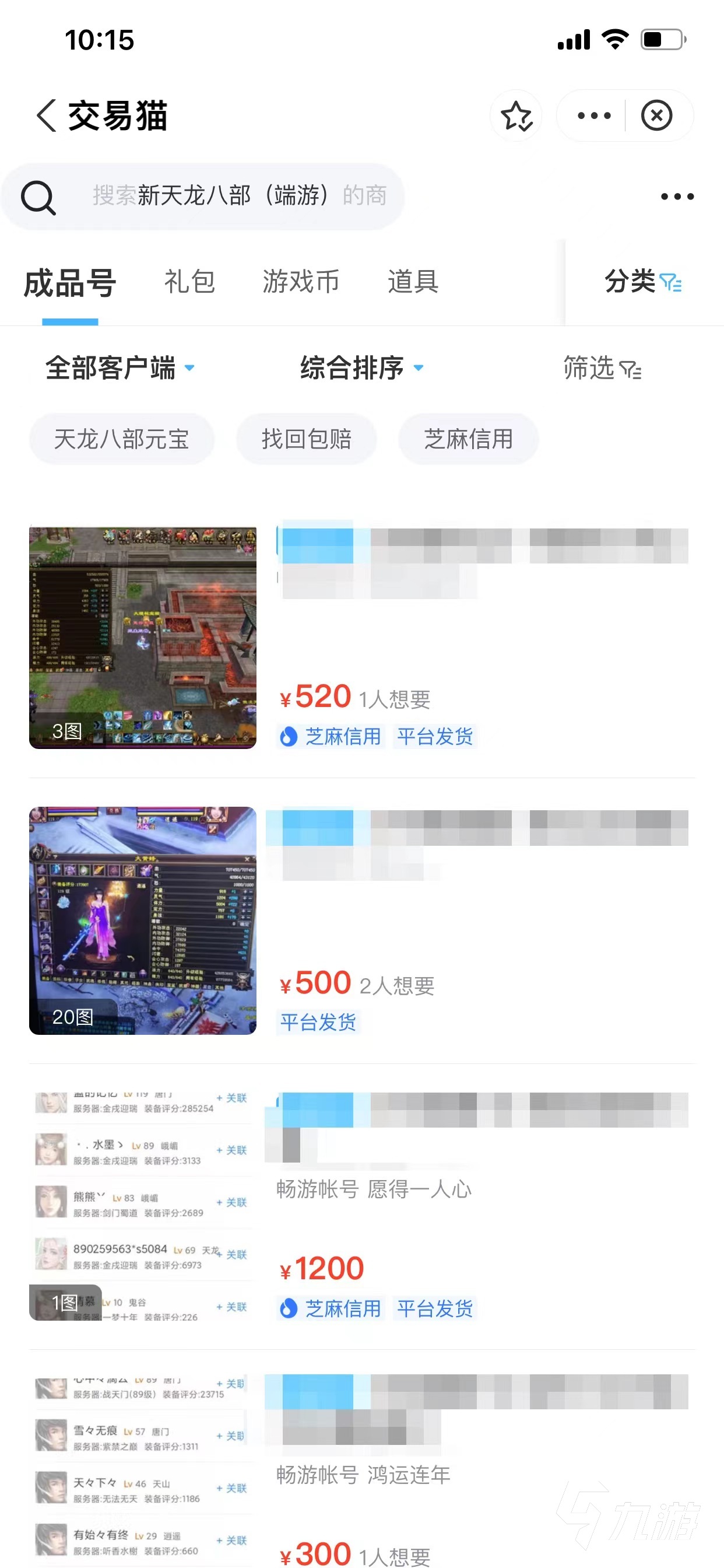 新天龍八部的熱門也讓賬號市場非?;馃幔胍I號的玩家有多種賬號類型可以選擇,想要賣號的玩家也不用擔心流量與熱度的問題。選擇交易貓有哪些優(yōu)勢:
