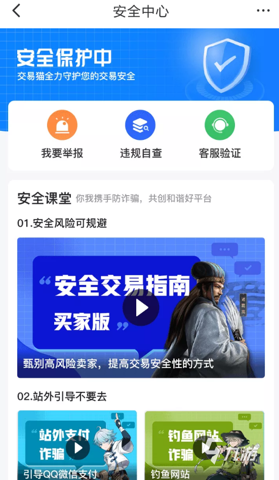 3、平時(shí)沒有經(jīng)常進(jìn)行賬號(hào)交易的玩家,難免對(duì)每一次交易都抱著警惕的態(tài)度,而交易貓之中的安全中心將隨時(shí)守護(hù)大家的交易安全。不僅支持玩家在線進(jìn)行違規(guī)內(nèi)容的舉報(bào),同時(shí)還可以讓客服驗(yàn)證一些商品的真實(shí)性,避免大家購買到不滿意的商品。