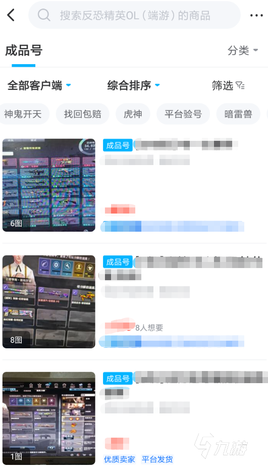1、大家可以通過搜索輕松的進(jìn)入到CSOL的交易專區(qū)當(dāng)中,在這里各位可以獲取到豐富的成品號(hào)交易信息,每一個(gè)游戲賬號(hào)都將為玩家們帶來各種不同的槍械道具,大家可以通過價(jià)格之間的對(duì)比來進(jìn)行參考,利用每一個(gè)商品的截圖來了解更多賬號(hào)內(nèi)容。