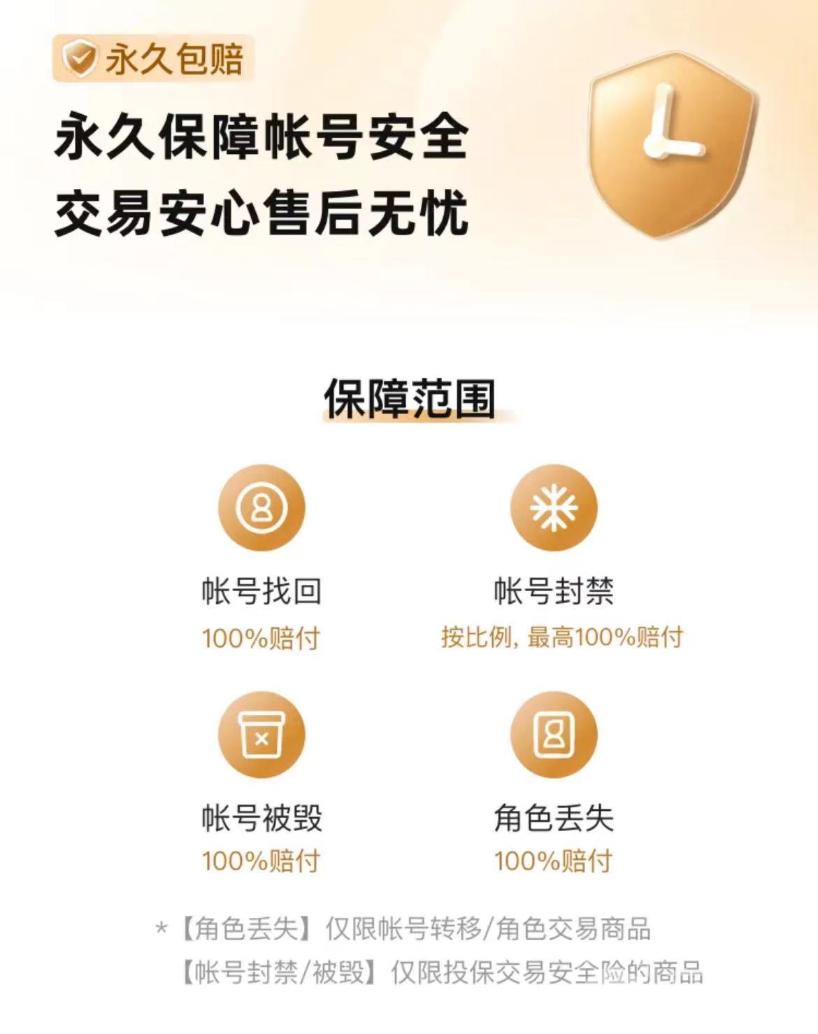 更為貼心的是,交易貓還提供了賬號(hào)保險(xiǎn)服務(wù),確保在保險(xiǎn)期限內(nèi),若出現(xiàn)賬號(hào)被找回等意外情況,平臺(tái)將全額賠付買(mǎi)家因購(gòu)買(mǎi)賬號(hào)而遭受的資金損失。這無(wú)疑為玩家在交易貓上的每一次賬號(hào)交易提供了堅(jiān)實(shí)的后盾。