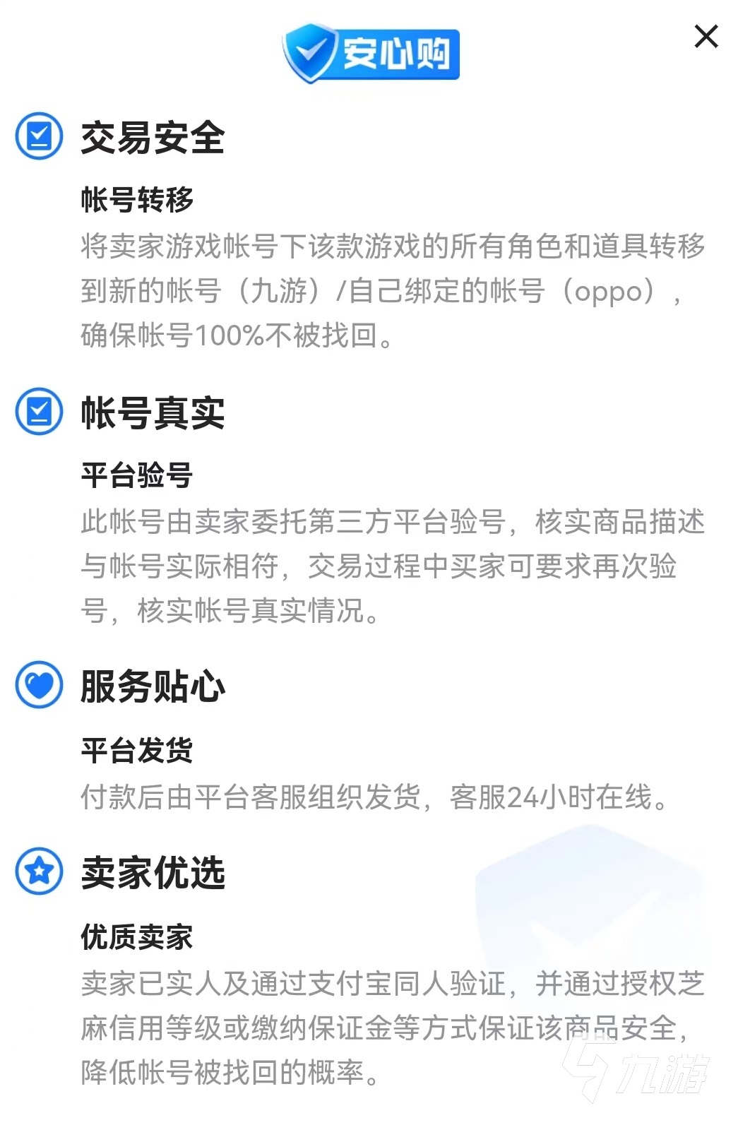 在現(xiàn)在買賣過程中直接進(jìn)行賬號(hào)轉(zhuǎn)移無疑是最安全方式,對(duì)于雙方來說都是如此。只要是九游和OPPO這兩個(gè)渠道服的號(hào),都可以在平臺(tái)中體驗(yàn)賬號(hào)轉(zhuǎn)移所帶來的方便。因?yàn)檗D(zhuǎn)移的僅僅是下面的角色資料,而不是賬號(hào)本身,所以不會(huì)產(chǎn)生交易過后的找回、盜號(hào)等問題,自然也就沒有了后顧之憂。