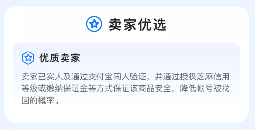 除此之外,此平臺的賣家們都是經(jīng)過平臺進行了篩選的,只有進行了實名驗證且通過授權(quán)芝麻信用等級之類,可以保證商品安全性的賣家才有資格在此平臺上架商品,所以各位用戶可以放心購買賬號。