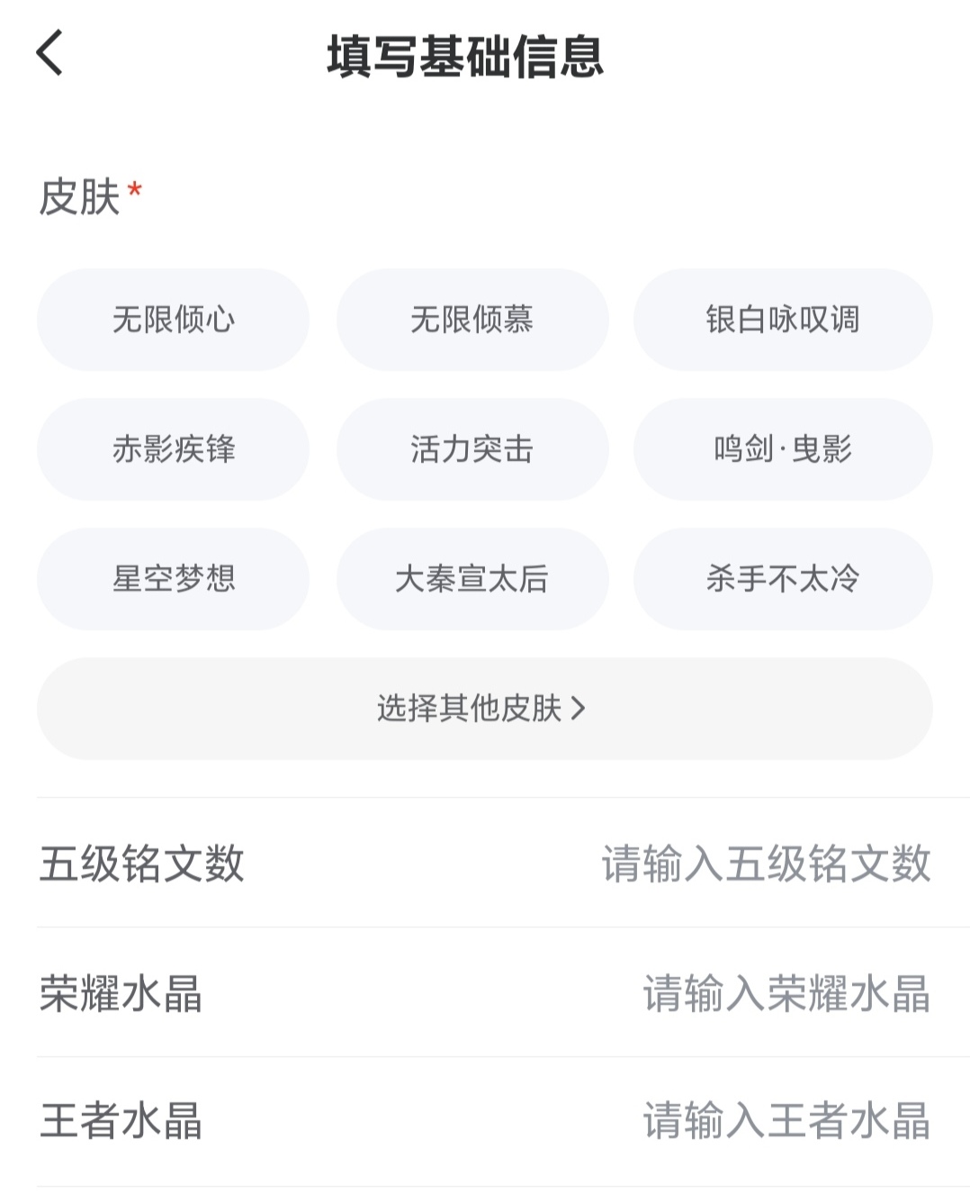 在交易貓當中,目前僅開放的幾款人氣高,以及方便估值的游戲,王者自然也在其中。交易貓的估值系統(tǒng)是非常智能且方便的。因為這個系統(tǒng)并不是像其他的估值,需要上傳截圖錄像等等,非常麻煩,還有可能泄露信息,交易貓估值只有點進去就是一個簡潔的界面,大家只需要填上游戲的區(qū)服皮膚,英雄,銘文等等就可以快速的進行一個賬號的估值。