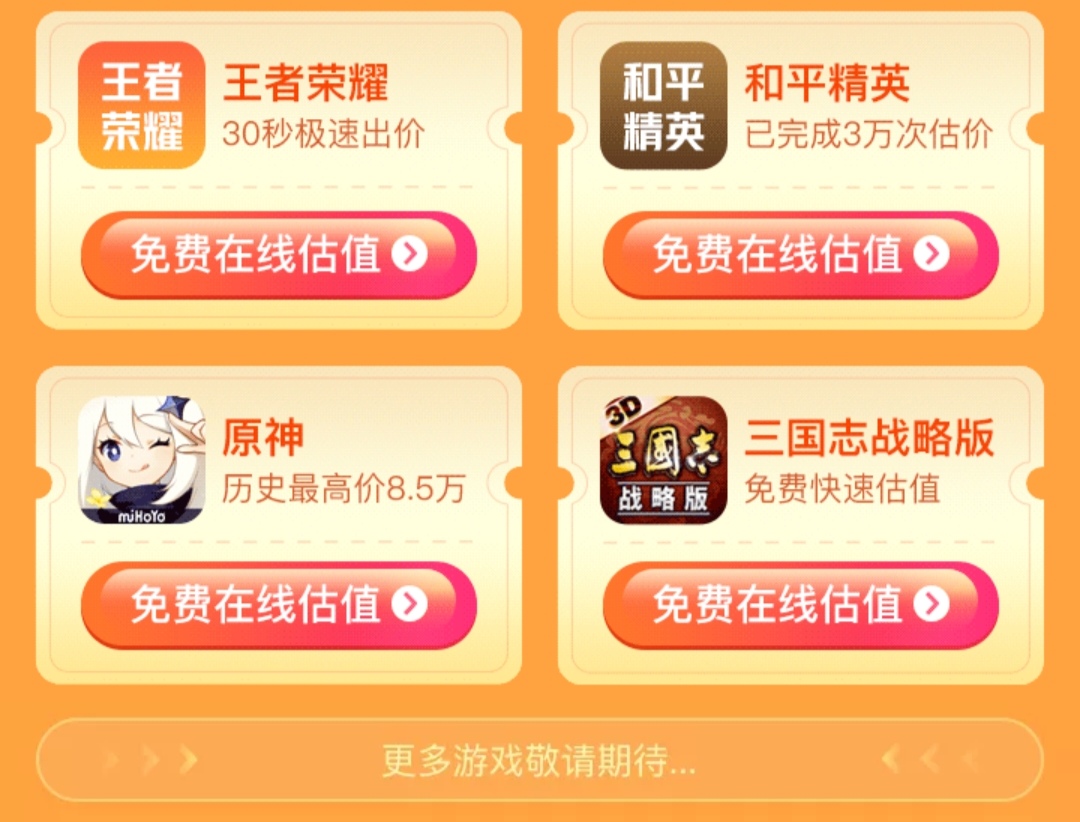 以上就是王者榮耀估號該去哪的全部解答了,交易貓雖然是一個賬號交易平臺,但它涉及的領(lǐng)域也非常深,賬號估值這種高難度的系統(tǒng)它也能做出來,足以見得交易貓在賬號交易這個行業(yè)上,做得有多認真。