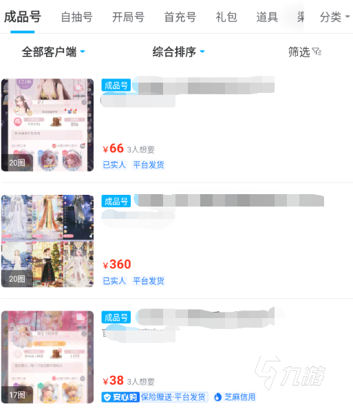 這個(gè)游戲開局是可以進(jìn)行角色抽取的,每個(gè)人開局所抽的角色并不相同,因此有些朋友可能只想買一個(gè)自抽號(hào),而恰好在交易貓上活躍的賣家數(shù)量是很多的,所以無論是自抽號(hào)還是成品號(hào)都是有貨的,而且它的價(jià)格普遍便宜,但賬號(hào)質(zhì)量并不低,從上圖的這幾個(gè)號(hào)就可以看出,它們的服裝和角色都是很多的,而且不少賬號(hào)都配備了保障安全的安心購服務(wù)。