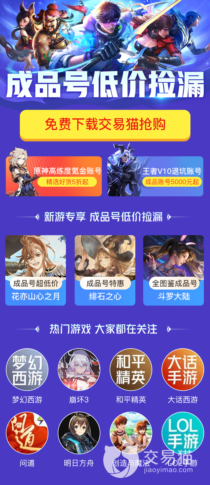 推薦交易貓的三大原因就給大家介紹到這里了,交易貓真是一個非常不錯的賬號交易平臺,滿足了輕度重度游戲玩家所有的虛擬交易需求,趕快點擊上方鏈接下載試試吧。