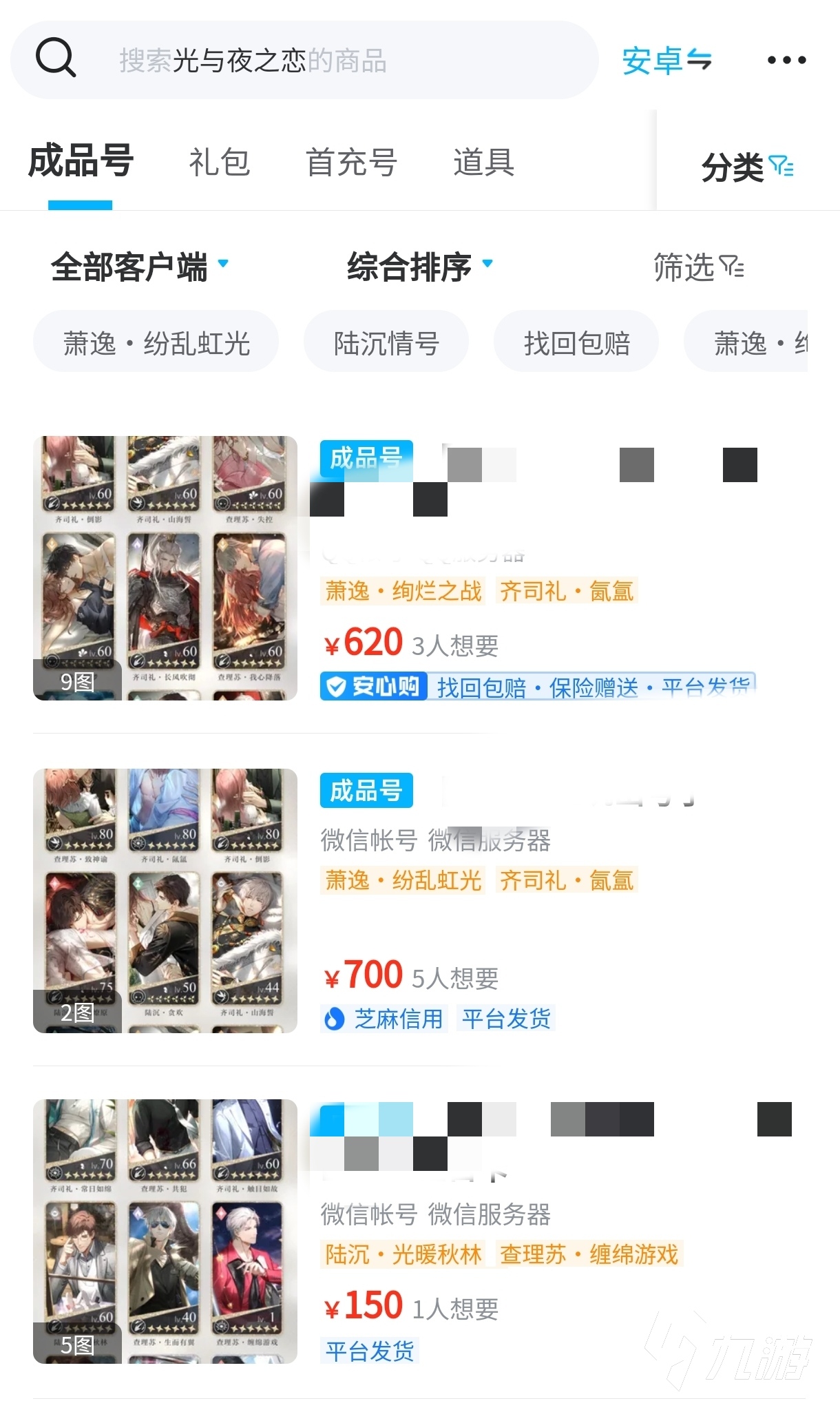 俗話說商場如戰(zhàn)場,想要更快地賣出自己的商品首先就要知道對手的情況,那么如何才能掌握更多對手的信息呢?賣家可以在首頁搜索光與夜之戀,并在二級搜索欄里搜索自己賬號的優(yōu)點,比如全人物圖鑒,這樣搜索出來的賬號就是和自己的賬號類似的商品了。賣家可以仔細查看這些賬號的賣點和他們的價格,并且對自己的賬號廣告進行適當調整,沒有買家會拒絕一個比較便宜且吸引人的商品。