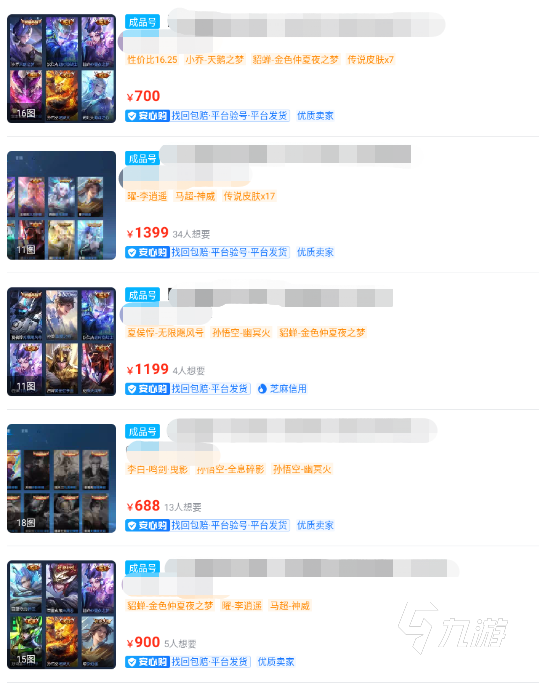 這個就是交易貓上目前一些優(yōu)質(zhì)v8賬號的出價,可以看到價格普遍都在七百往上,高的甚至已經(jīng)達(dá)到破千的水平,并且這些價格并不是賣家的孤芳自賞,大家可以看到這上圖中的每一個賬號基本上都是有很多人表達(dá)出想要意愿的。除了游戲本身人氣高的原因,賬號行情高更多是因為交易貓平臺活躍的用戶數(shù)量夠多,如果是其他平臺,可能就沒法出到這么高的價格還有人要了。