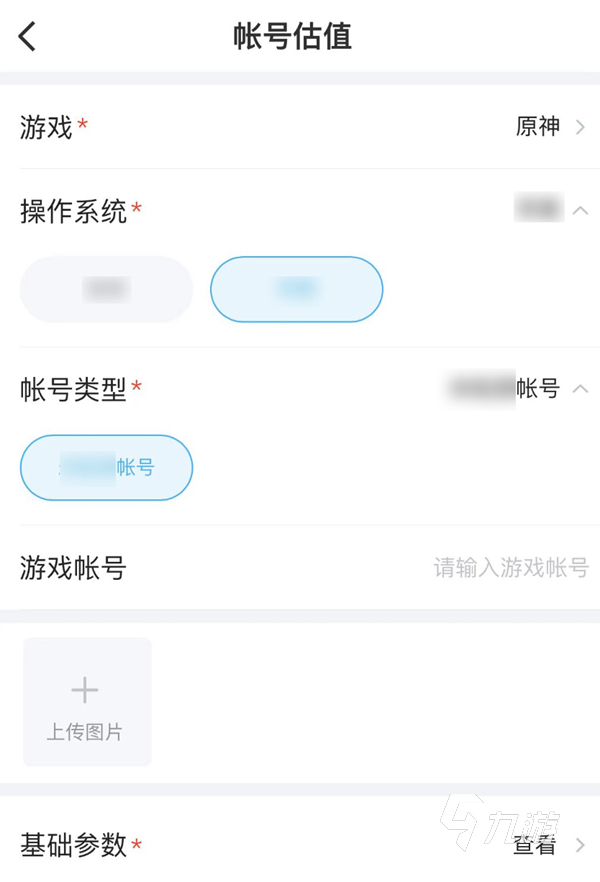 說了這么多優(yōu)點,其實估號功能本身的使用也是十分簡單的。以熱門的手游原神為例,進入估號之后依次選擇操作系統(tǒng)、賬號類型,輸入游戲賬號之后點擊基礎(chǔ)參數(shù)。真正影響價格的一般都是基礎(chǔ)參數(shù),在這里填寫我們的冒險等階、五星角色以及五星武器,然后點擊下方的保存就可以直接估算出價格了。