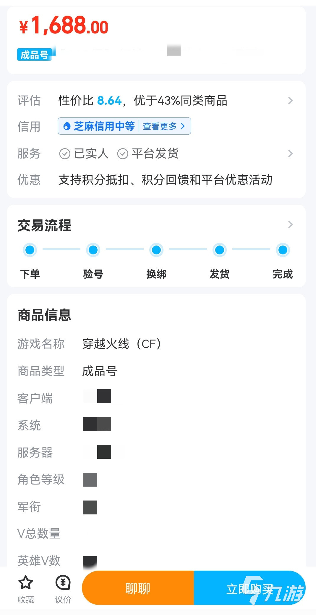 在交易貓中上架的游戲賬號都會進(jìn)行非常詳細(xì)的描述,對于CF這樣的熱門游戲會有自己的專區(qū),打開之后可以進(jìn)行發(fā)布時間、價格高低、性價比等不同的篩選。完成初步篩選后,還可以進(jìn)行VIP槍械以及對應(yīng)角色的進(jìn)一步篩選。找到自己喜歡的賬號后,點擊可以查看詳情,包括賬號的VIP具體的槍械種類和角色的數(shù)量等信息。而這兩項內(nèi)容將直接影響到CF游戲賬號的價值。所以交易貓就以最簡單的方式將最具有價值的方面直接展現(xiàn)出來。
