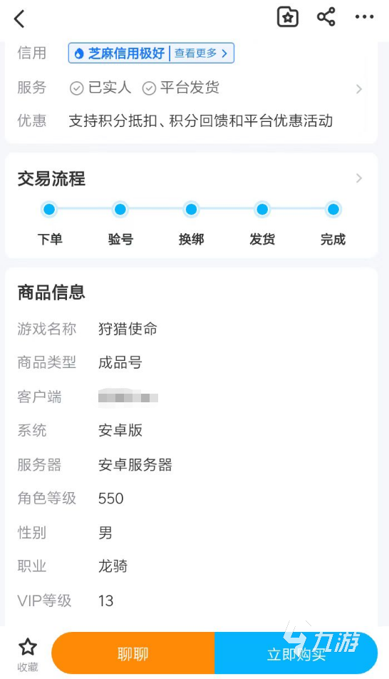 2、如果遇到打算購買的商品時(shí),推薦各位進(jìn)入到詳情頁面再一次進(jìn)行了解,通過各種具體的商品信息來判斷賬號的價(jià)值,這樣可以避免玩家購買到自己不太喜歡的游戲號。同時(shí),商品信息內(nèi)容當(dāng)中也將提供角色的等級、職業(yè)信息。