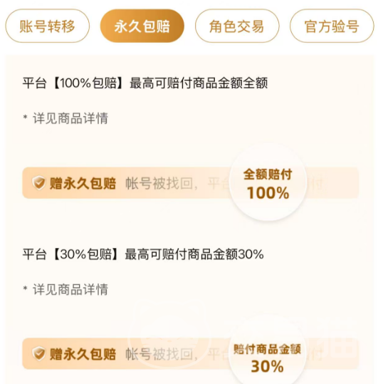 值得一提的是,交易貓在安全性方面表現(xiàn)還是很突出的,為了確保各位能安心交易心儀游戲號,平臺針對部分賬號推出了永久包賠承諾,這樣在交易過程中就能更加從容放心,倘若不幸遇到找回、盜號等相關(guān)問題,只需通過平臺的售后維權(quán)渠道進行反饋申訴,便可得到妥善處理,而不用在擔(dān)心自己會遇到被騙或者利益受損等情況的發(fā)生。