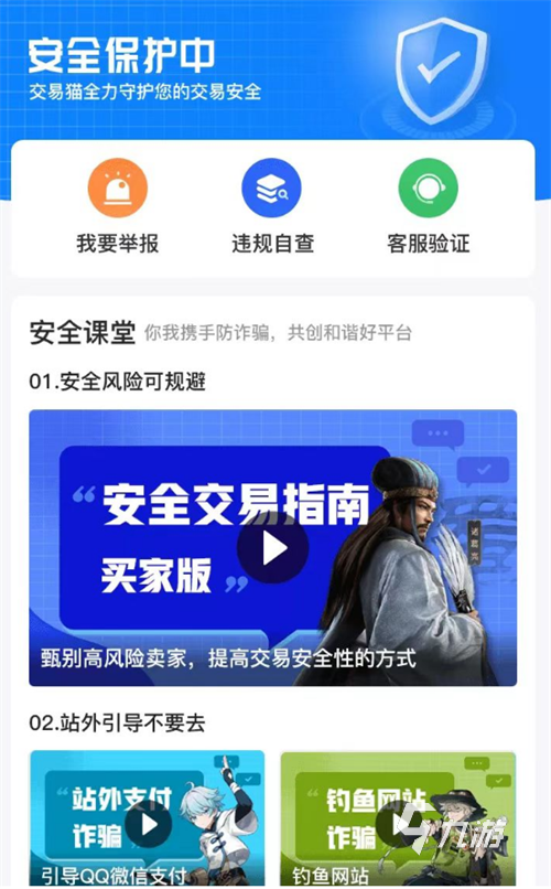 在安全方面:從玩家進入到平臺的那一刻開始,就已經(jīng)為大家開啟了保護,目的就是為了把一些詐騙和不法份子給排除出去,優(yōu)化交易的環(huán)境,并且買家可以在安全中心里面去對一些違規(guī)的賣家進行舉報,像經(jīng)典的案例,也有視頻相關(guān)的教學(xué)給到大家,讓小伙伴們即使是小白,也能快速的上手,去自由選購賬號。
