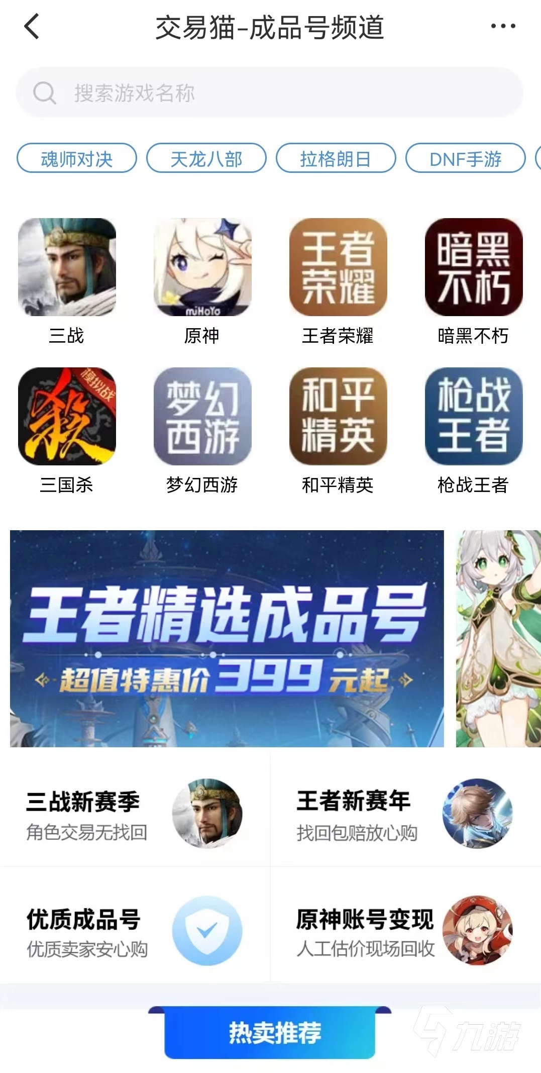 無(wú)論大家選擇的是端游還是手游,或者是網(wǎng)頁(yè)游戲,都建議去交易貓游戲賬號(hào)交易平臺(tái)操作,這里服務(wù)范圍廣泛安全措施到位,能夠安穩(wěn)的完成整項(xiàng)操作。