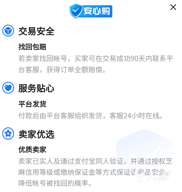 交易貓的安心購(gòu)也屬于是特色服務(wù),這個(gè)服務(wù)最大的亮點(diǎn)就是賣家無需出錢買家也無需購(gòu)買,平臺(tái)針對(duì)賬號(hào)以及商家誠(chéng)信度自動(dòng)去贈(zèng)送安心購(gòu)保險(xiǎn),買家在選擇賬號(hào)的時(shí)候自然也會(huì)先去考慮帶有這類字眼的賬號(hào),從而促進(jìn)交易。